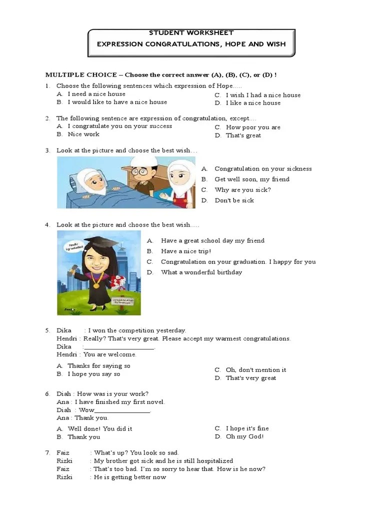 Bahasa inggris soal kelas 8 contoh soal congratulations wish and hopes. She hopes to be a successful business owner. Yuk, cek latihan soal bahasa inggris kelas 9 untuk penilaian akhir semester! Student worksheet expression congratulations, hope and wish multiple . Latihan soal bahasa inggris kurikulum 2013 revisi 2016.